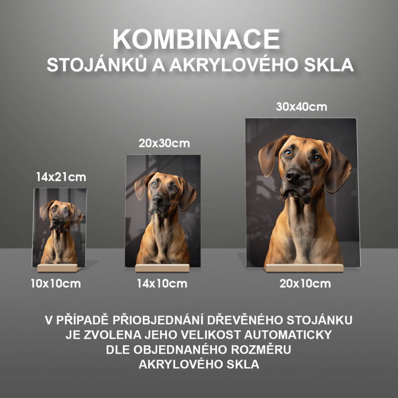 V případě přiobjednání dřevěného stojánku je zvolena jeho velikost automaticky dle objednaného rozměru akrylového skla viz produktové foto.