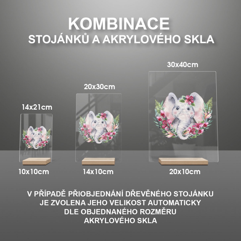 V případě přiobjednání dřevěného stojánku je zvolena jeho velikost automaticky dle objednaného rozměru akrylového skla viz produktové foto.