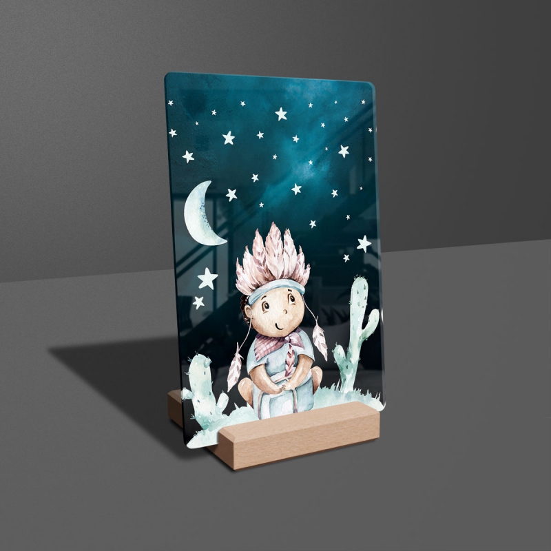 Na produktovém fotu vyobrazena nejoblíbenější varianta akrylového skla 14x21/21x14cm a dřevěný stojánek 10x10cm.