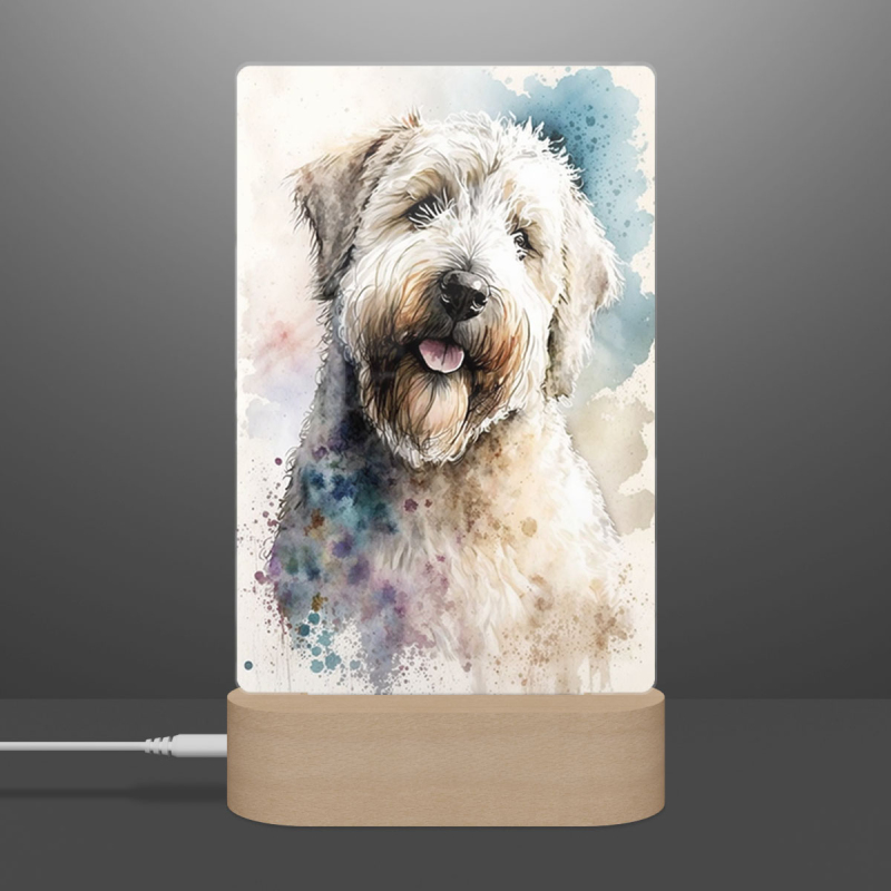 Součástí balení je akrylové sklo dle výběru, dřevěný RGB LED stojánek a napájecí USB kabel.