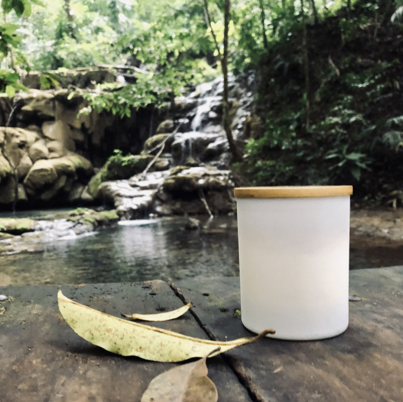| Materiál | sojový vosk, sklo, bambus |