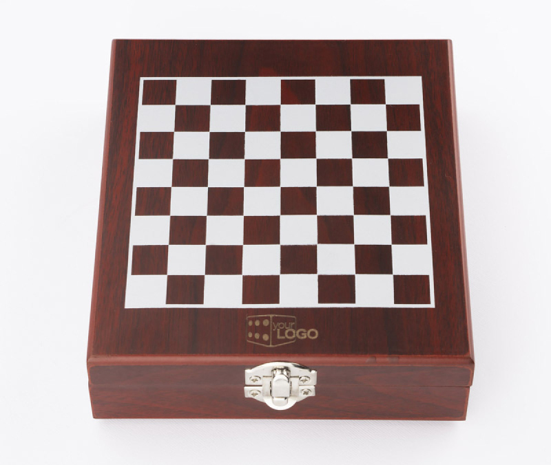 Vinařská sada obsahující 4 prvky: číšnický nůž, teploměr, zátku a pásek na hrdlo lahve. Navíc má sadu šachových figurek. Šachové figurky jsou vyrobeny ze dřeva. Logo je vyryto na krabičce.