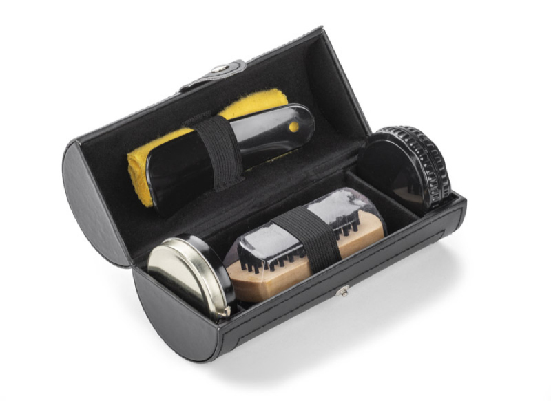 Užitečný sada na údržbu obuvi. Skládá se z pasty na boty, čističe, lejna, kartáče a hadříku.