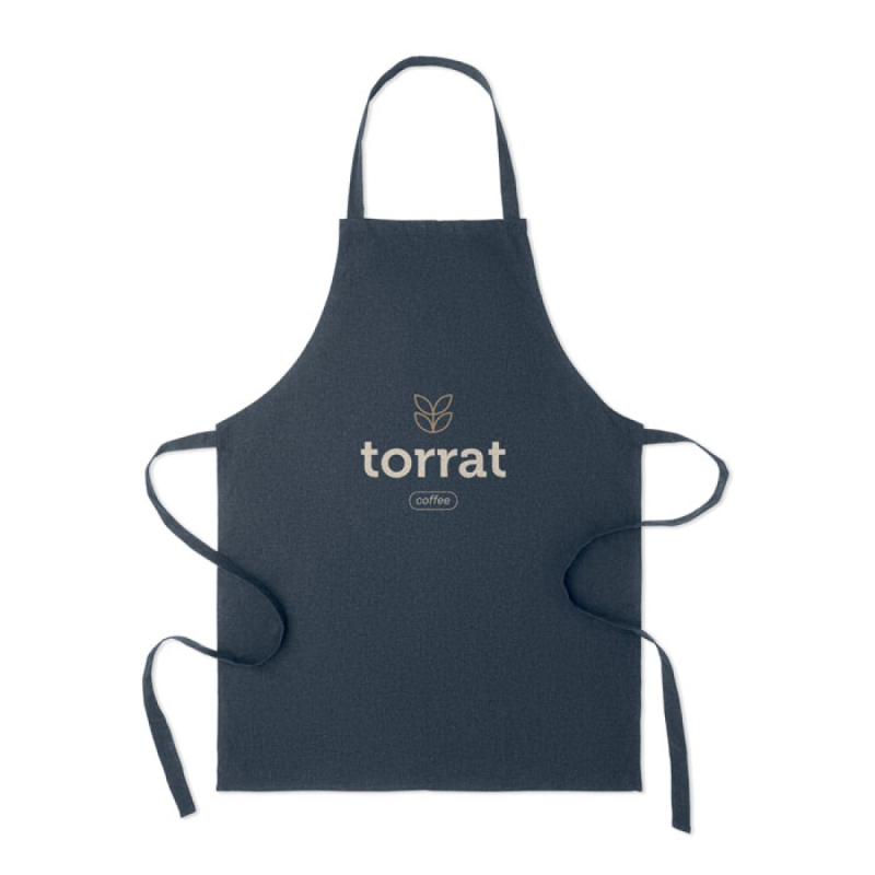 Zástěra z recyklované předspotřební bavlny v gramáži 180g (70 % recyklovaná bavlna a 30 % polyester RPET). Tento produkt se po tisku může srazit.
