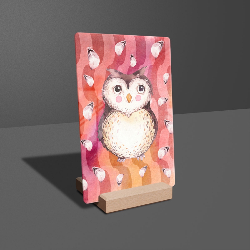 Na produktovém fotu vyobrazena nejoblíbenější varianta akrylového skla 14x21/21x14cm a dřevěný stojánek 10x10cm.