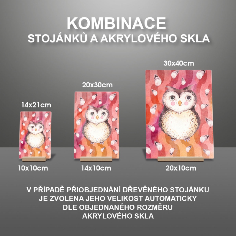 V případě přiobjednání dřevěného stojánku je zvolena jeho velikost automaticky dle objednaného rozměru akrylového skla viz produktové foto.