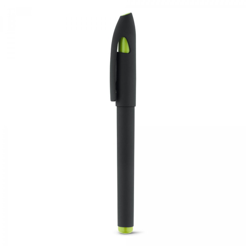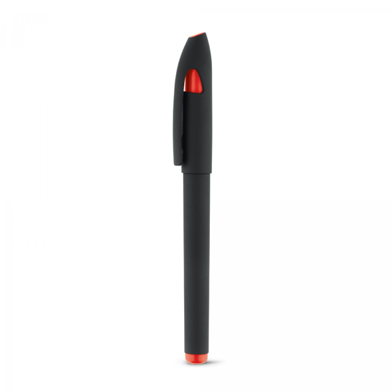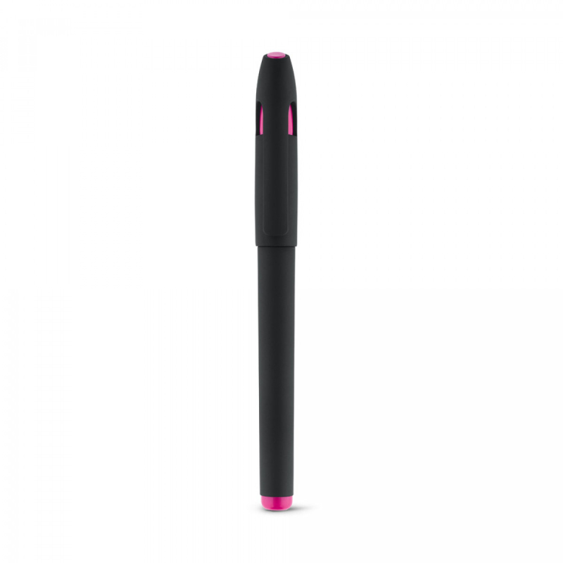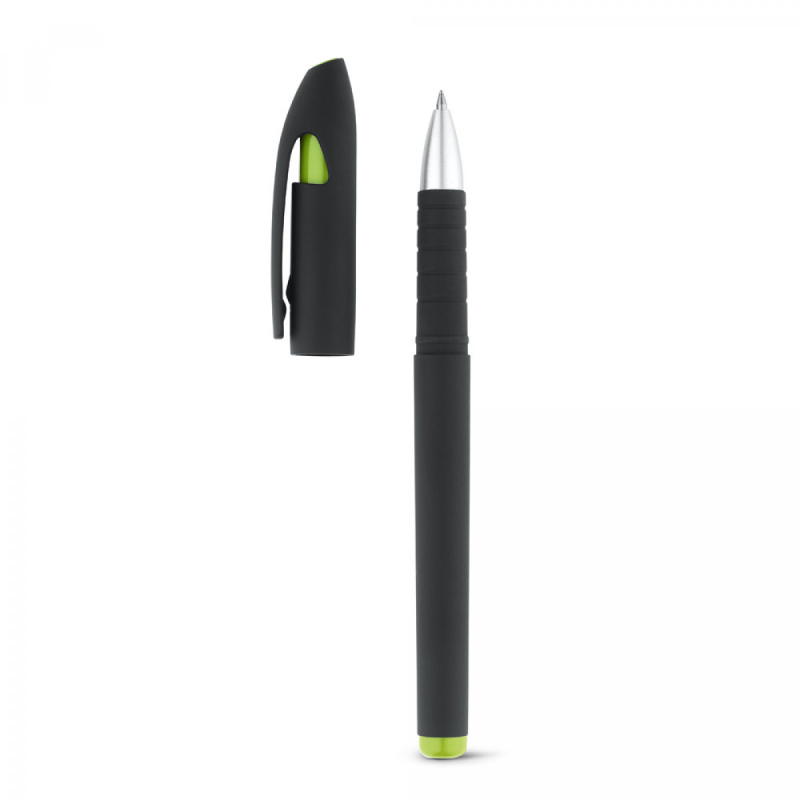Kuličkové pero s protiskluznou rukojetí a barevnými detaily. Víčko a klip v ABS a gumové úpravě. ø13 x 143 mm