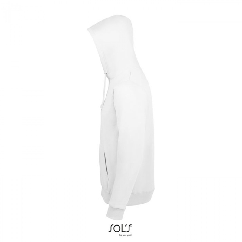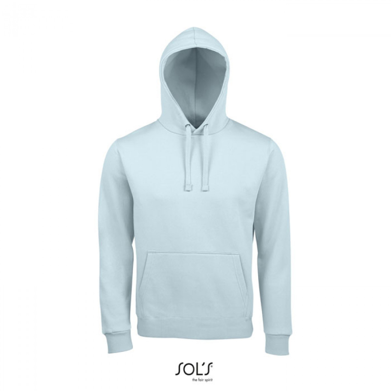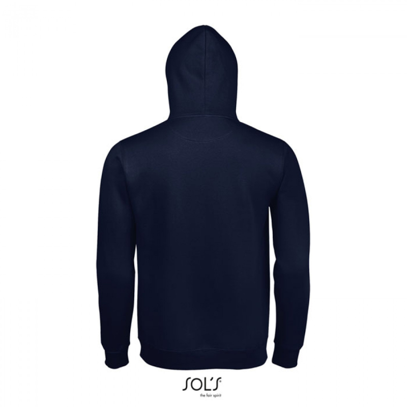 SOL’S SPENCER, Pánská / unisex mikina s moderním střihem bez zipu. Klokaní kapsa vpředu, podšitá kapuce s odolnými šňůrami, žebrované manžety 2x2 a lem. Neutrální velikostní štítek. Materiál: 280 g / m², uvnitř kartáčovaná 80% bavlna a 20% polyester. Vnějšek: 100% bavlna. OEKO-TEX.