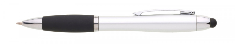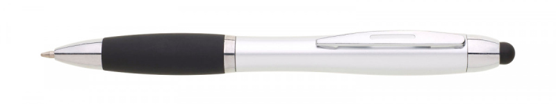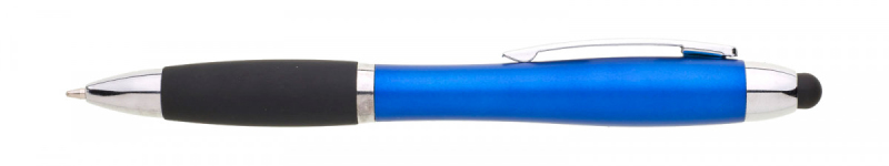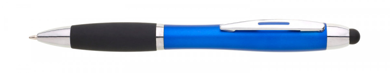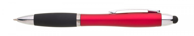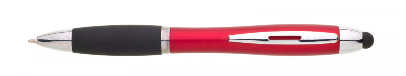 Červená plastová propiska s touch koncem a led světlem uvnitř těla. Po vylaserování loga vzniká svítící efekt.