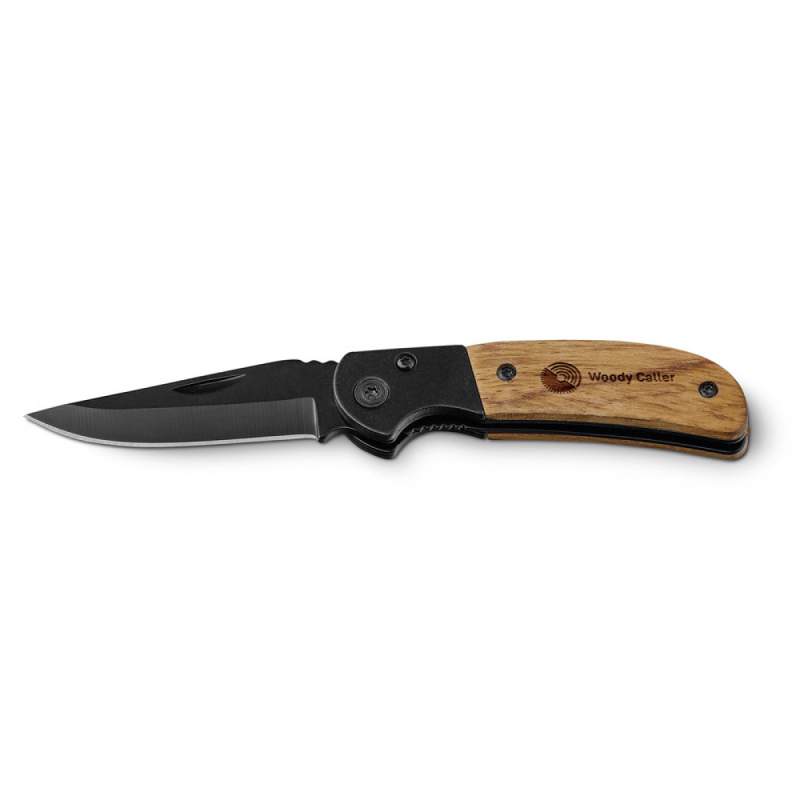 Kapesní nůž z nerezové oceli a dřeva s bezpečnostním zámkem. Dodáváno v krabičce. 84 x 11 x 24 mm | Krabička: 94 x 33 x 16 mm