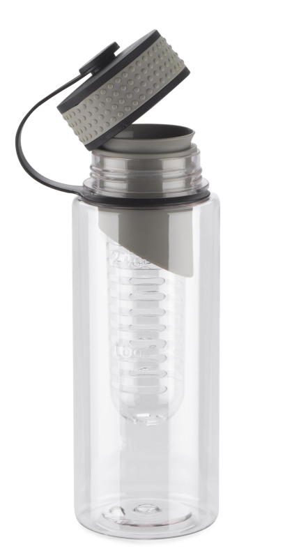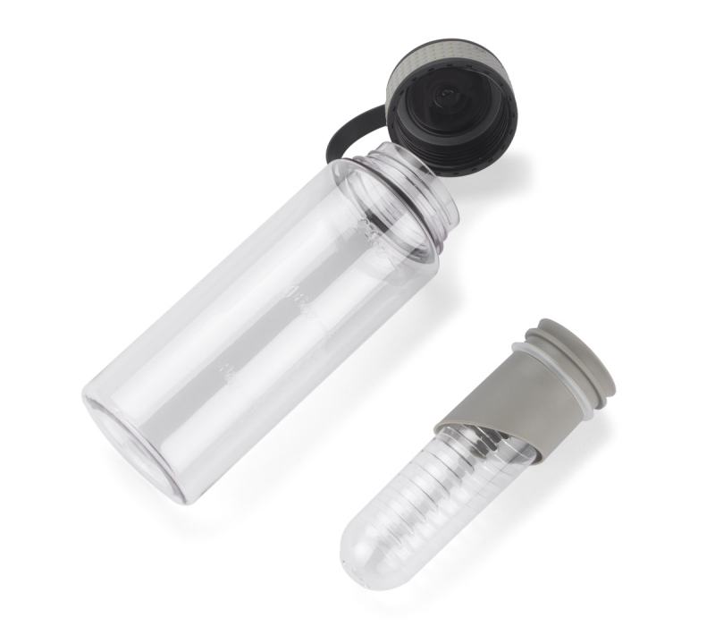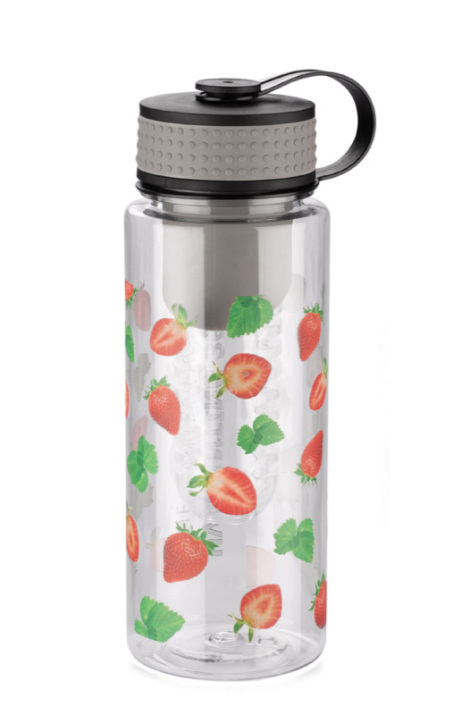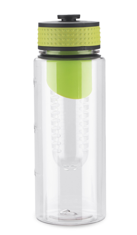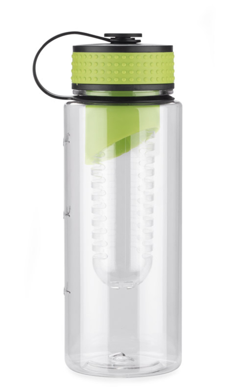 Sportovní lahev má vložku na ovoce. Objem 800 ml. Vyrobená z tritanu. Zabalená do biodegradabilního sáčku.
