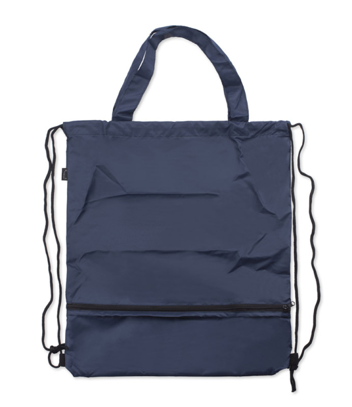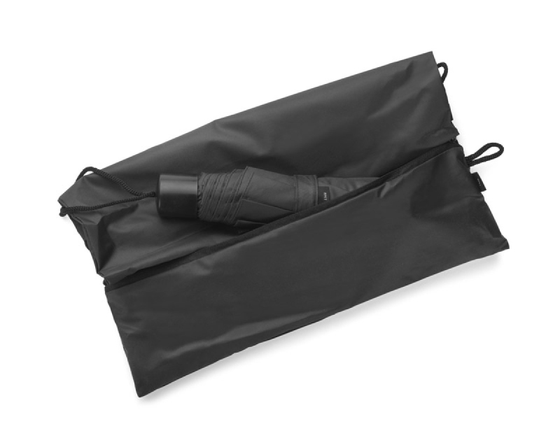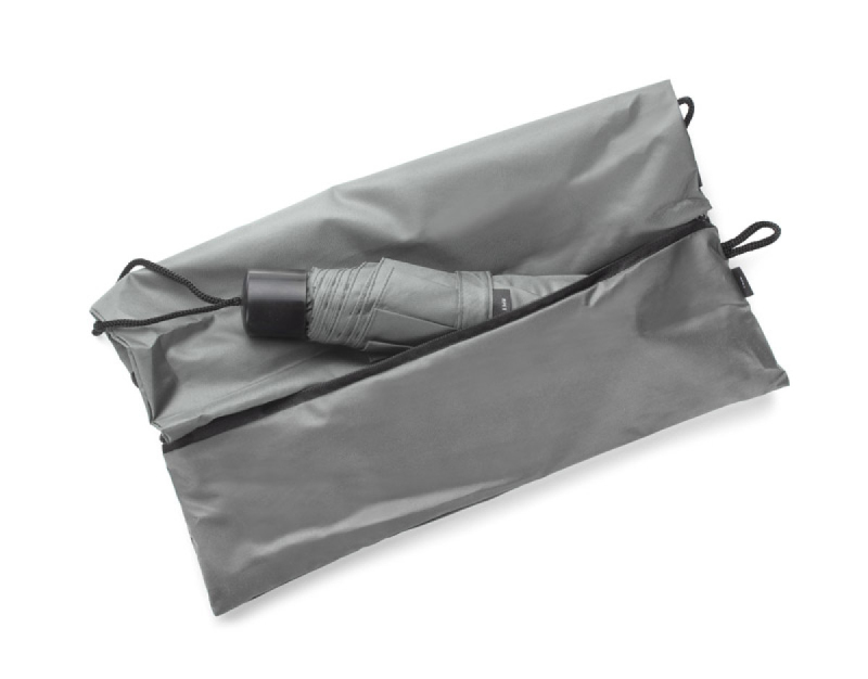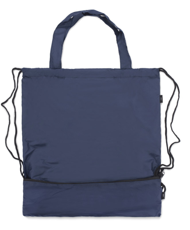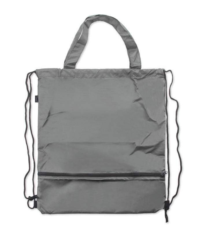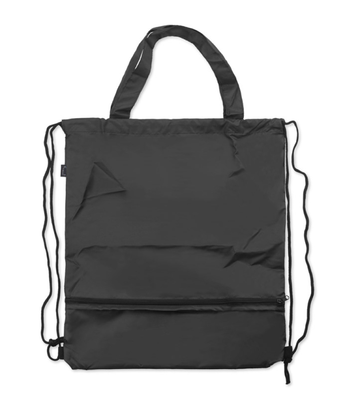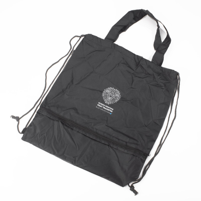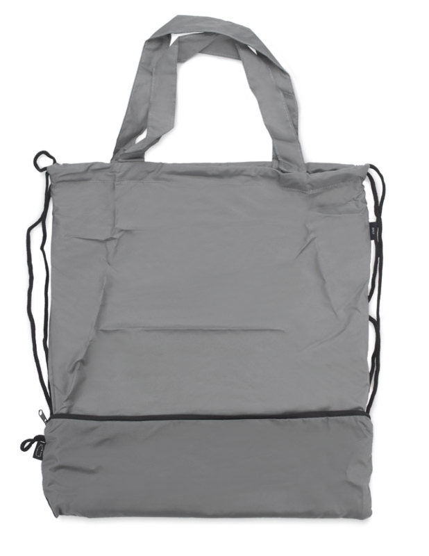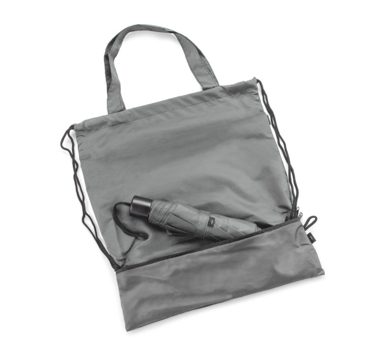 "Pytel na šňůrku s deštníkem RAINY je vyrobeny z polyesteru rPET, který ji činí ekologičtější. Vnitřek tašky je jednokomorový. Kromě tradičních šňůr má také rukojeti dlouhé 44 cm, takže ji lze také použít jako nákupní taška. Ve spodní části tašky je kapsa na zip, ve které je skrytý přiložený deštník, také vyrobený z rPET polyesteru. Deštník se otevírá a zavírá ručně. Maximální zatížení pytla je asi 3 kg. "