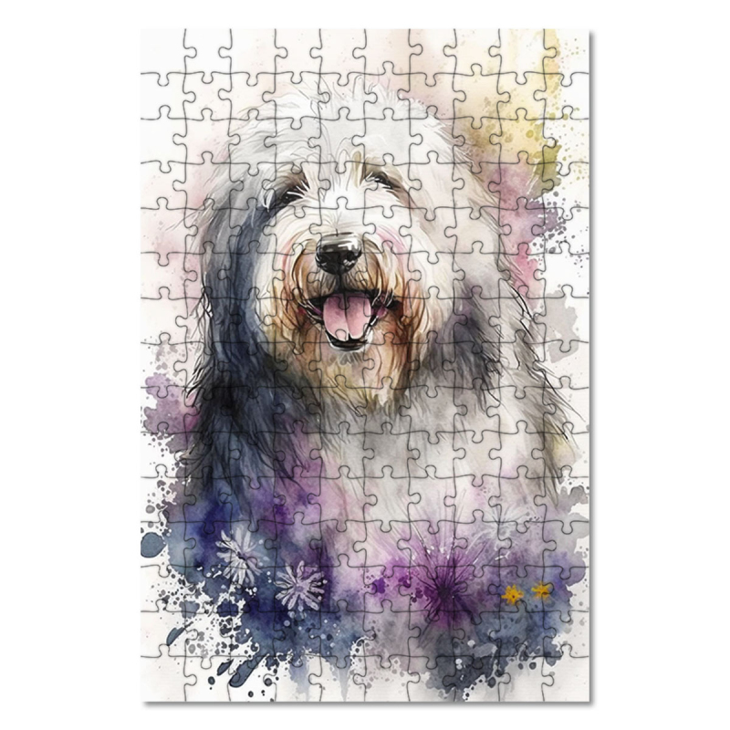 Dřevěné puzzle Starý anglický ovčák akvarel