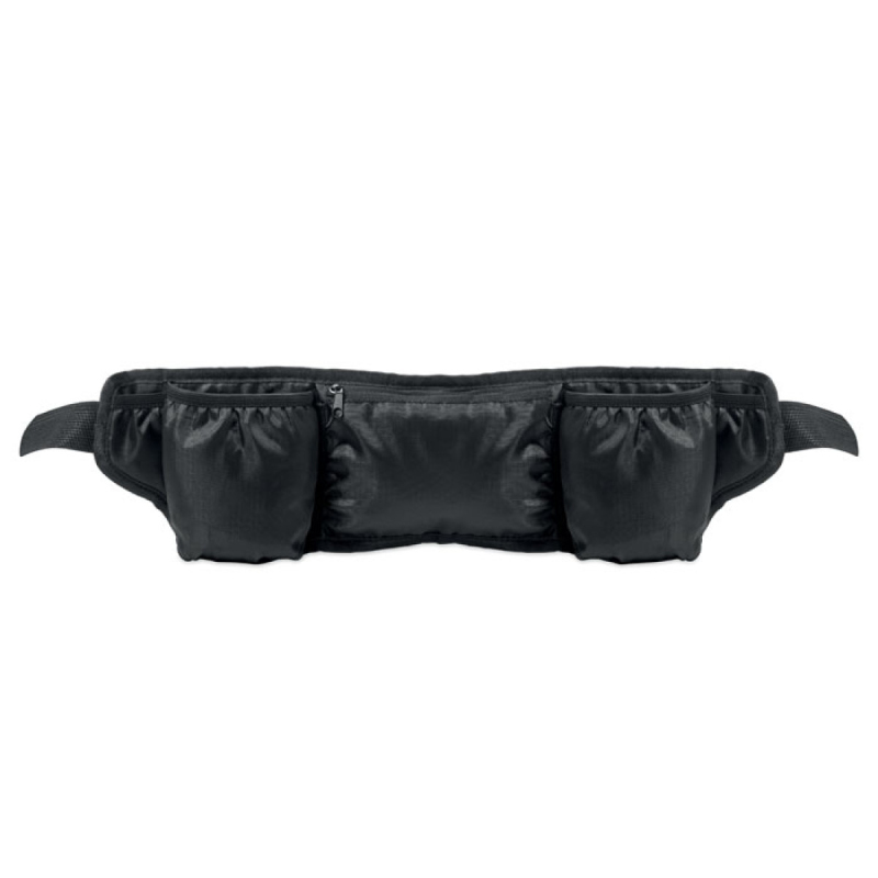 Sportovní ledvinka na běhání a turistiku vyrobená z polyesteru 420D RPET se síťovanými zády. Má dvě přihrádky na lahve, centrální kapsu na zip a nastavitelný popruh. Lehká a odolná.