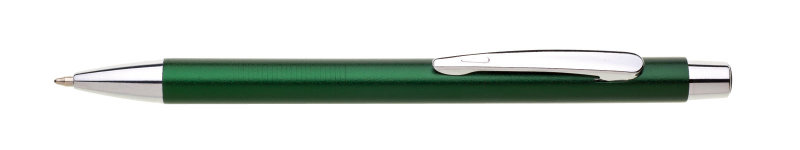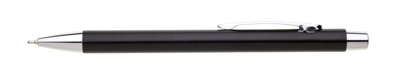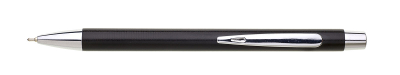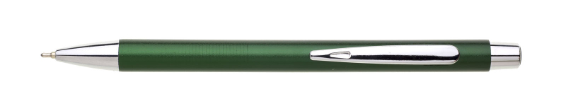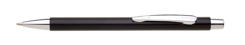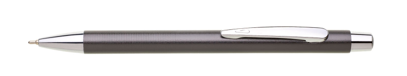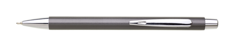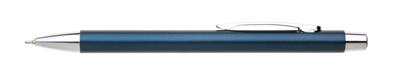 Kovová propiska v modré, matné metalické barvě, rovné hladké tělo je na úchopu jemně vroubkované. Stříbrné chromové doplňky. Náplň X20, modře píšící.