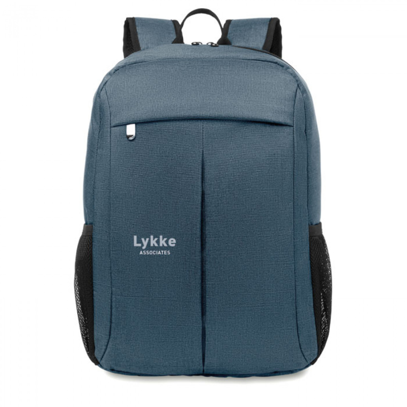 Batoh na notebook z dvoubarevného polyesteru. Vnitřní kapsa na 15 inch notebook, přední kapsa na zip. Polstrovaná záda a popruhy. Úchytka ke kufru.