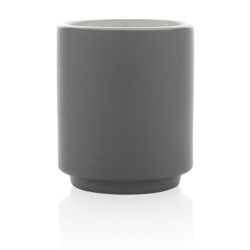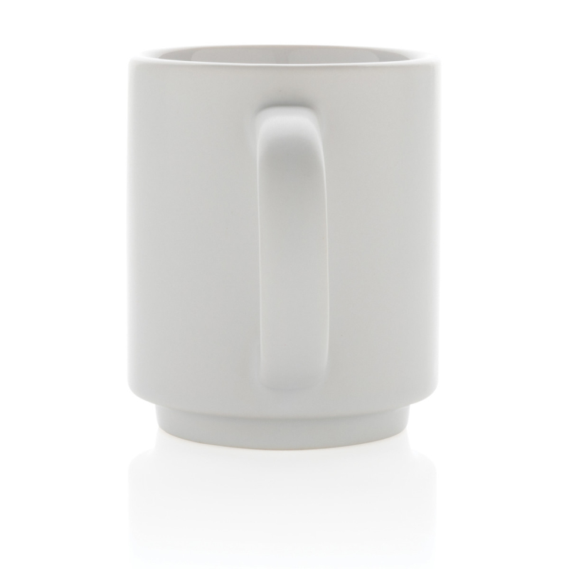 Kompaktní stohovatelný keramický hrnek pro snadné skladování a úsporu místa. Vhodné do myčky nádobí s odolností až 125 mycích cyklů pro jakoukoliv dekorační techniku (v souladu s EN12875-1). Baleno v dárkové krabičce. Objem: 180ml.