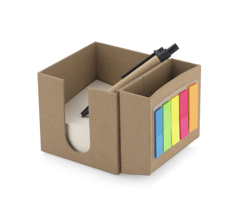 Zajímavá sada nálepek uzavřených v kartonové kostce - tato sada se může rozložit pro větší pohodlí při používání. Uvnitř najdete sada bílých kancelářských poznámkových karet, přihrádku na kancelářské potřeby a samolepicí značky vyrobené z PET plastu. PET použitý k vytvoření těchto značek je mnohem lepší než papírové a navíc jsou m