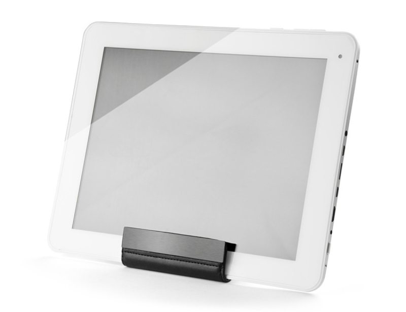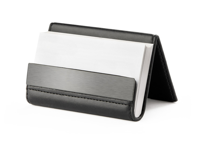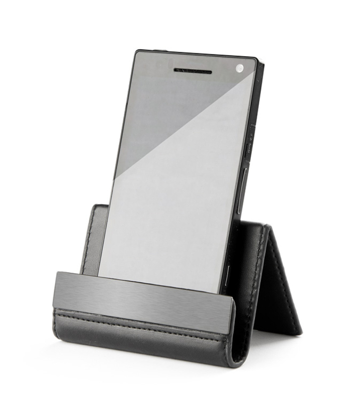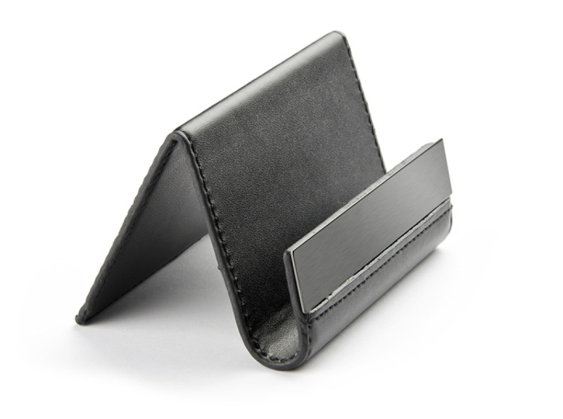 Univerzální stojan na stůl, který lze použít jako držák mobilu, držák Ipadu nebo držák na jména. Může držet až 30 jmen. Logo bude vyryto na černé hliníkové desce.