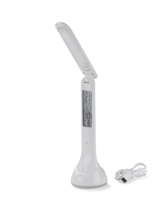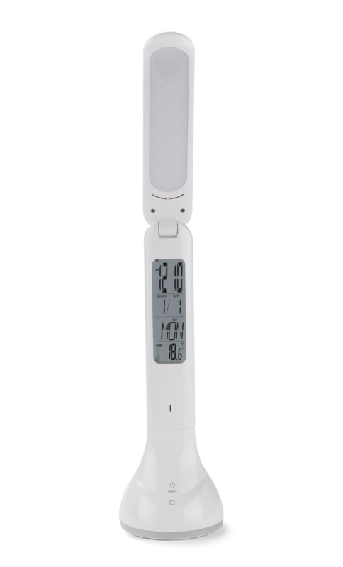 Unikátní stolní lampa s vestavěnou meteorologickou stanicí. Lampa má tři úrovně intenzity světla, takže váš stůl bude vždy dostatečně osvětlen. Speciální filtr umístěný u LED diod umožňuje světlo přirozenější a pomáhá chránit vaše oči. Proměnné, vícebarevné podsvícení (RGB - červená, zelená, modrá) stojanu mu dodává moderní vzhled a vytváří un