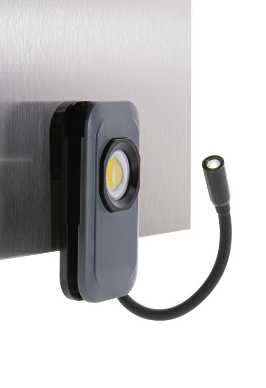 Opakovaně dobíjetelná odolná pracovní svítilna. Obsahuje COB (260 lumenů) pro osvětlení blízkého prostoru a nastavitelné LED (80 lumenů) pro osvětlení vzdálenosti. 3 režimy: LED, COB, 50 % COB. Včetně magnetu a na zadní straně. Zabudovaná 1 000 mAh baterie pro svícení po dobu až 3h na jedno nabití. Vyrobeno z RCS recyklovaného ABS plastu. RCS (Recycled Claim Standard) je globální standard, který umožňuje ověřit použití recyklovaného materiálu v produktu napříč celým dodavatelským řetězcem. Podíl použitého recyklovaného materiálu vzhledem k celkové váze produktu: 36 %. Včetně USB C nabíjecího kabelu.