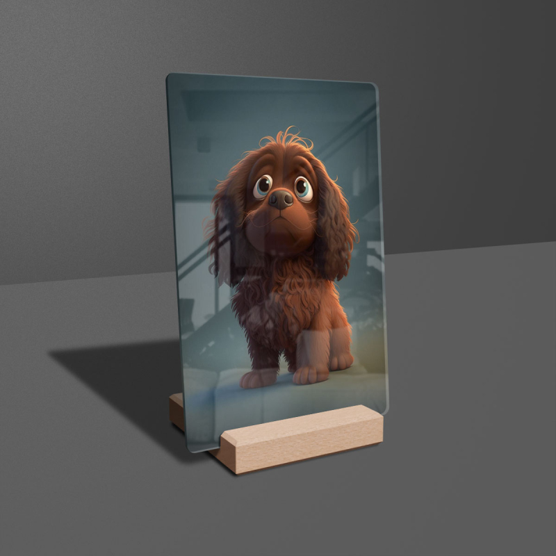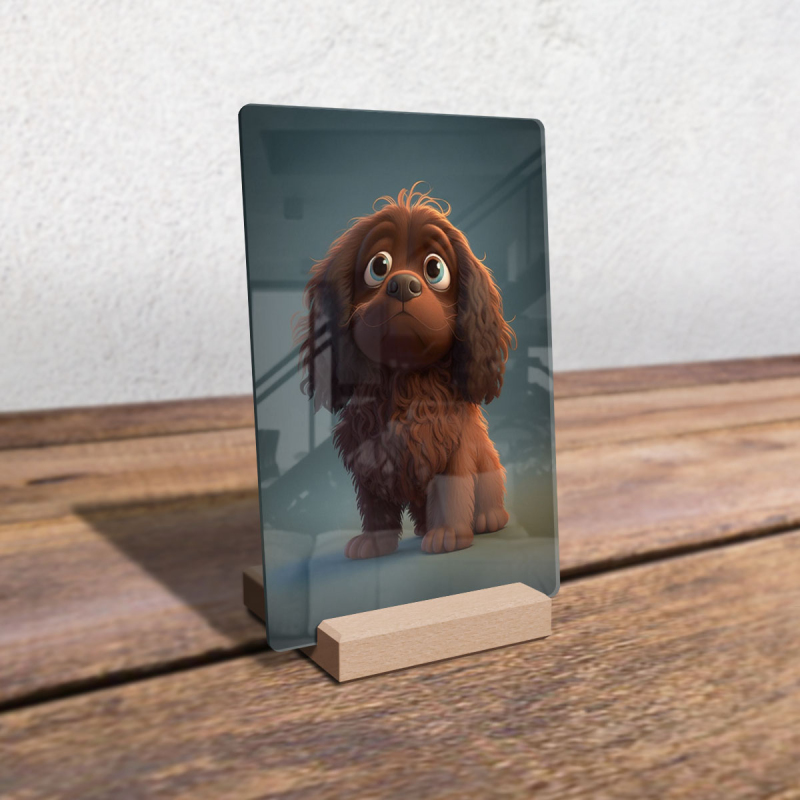 Dárková deska s digitální grafikou psa z akrylového skla.