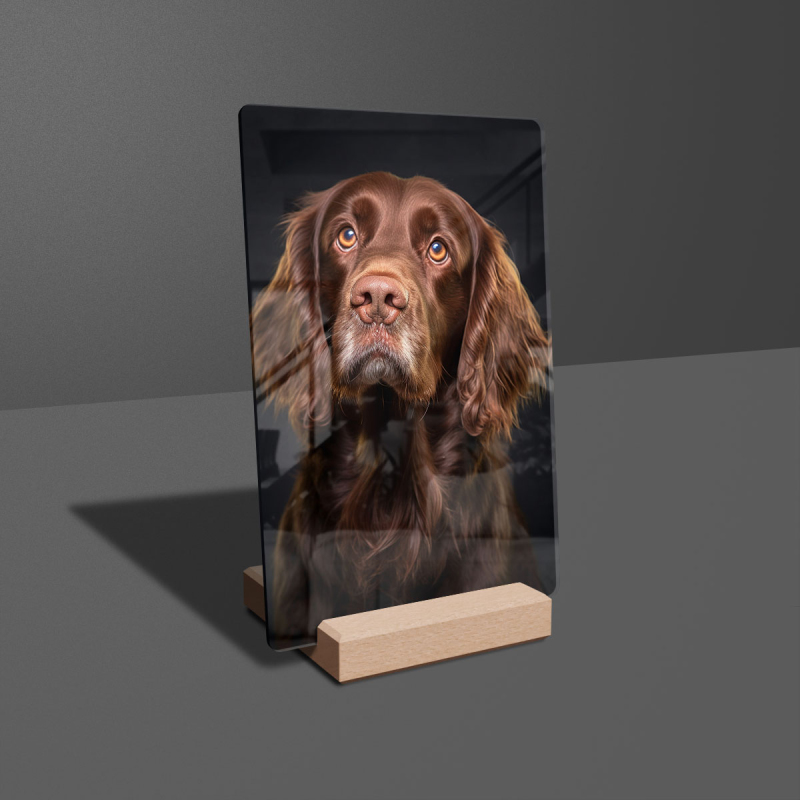 Dárková deska s digitální grafikou psa z akrylového skla.