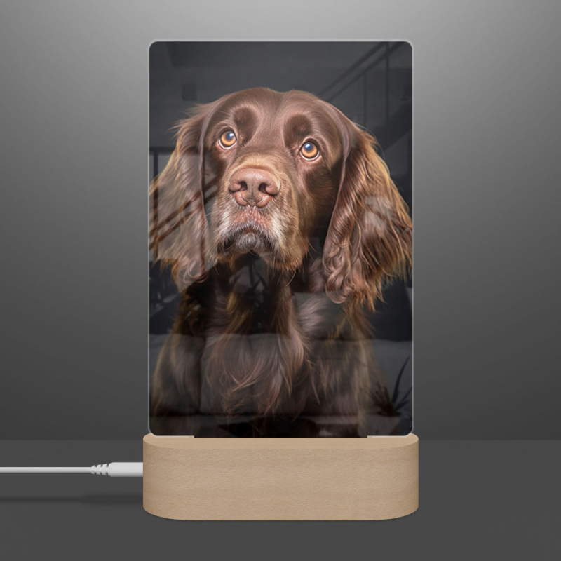 Lampa s digitální grafikou psa