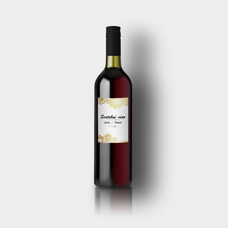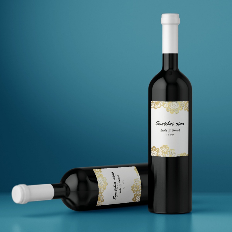 Etiketa na svatební víno nebo slivovici s možností tisku jmen snoubenců a data svatby.