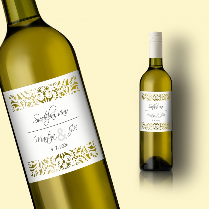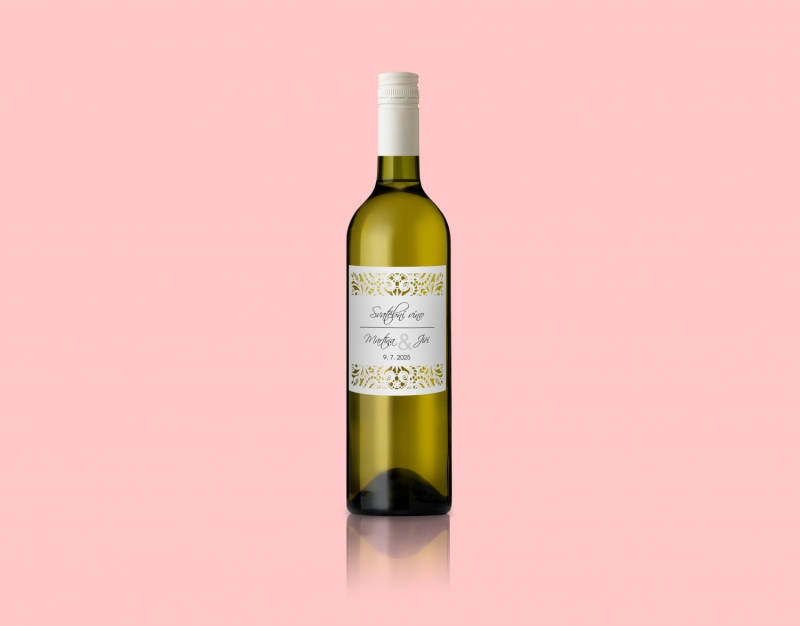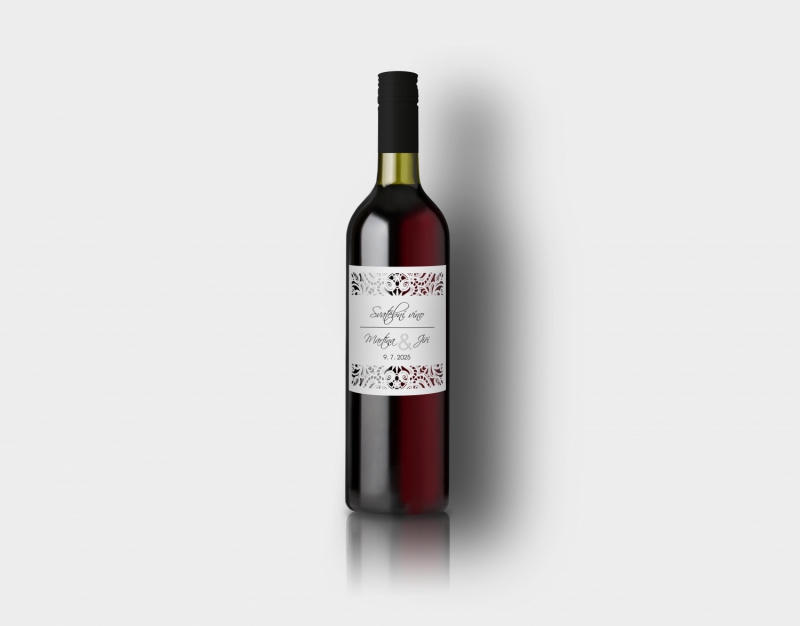 Etiketa na svatební víno s možností tisku jmen snoubenců a data svatby.