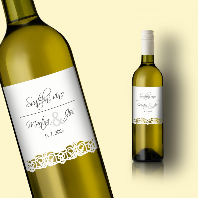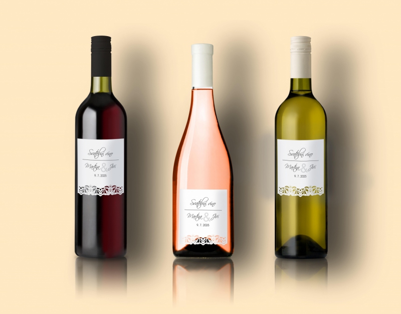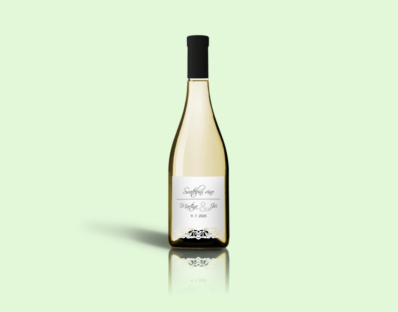 Etiketa na svatební víno s možností tisku jmen snoubenců a data svatby.