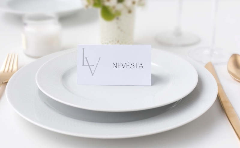 Jmenovka na svatební stůl s moderním designem. Tisk na kvalitním papíru v gramáži 300g/m2 s povrchovou úpravou matného soft touch lamina.