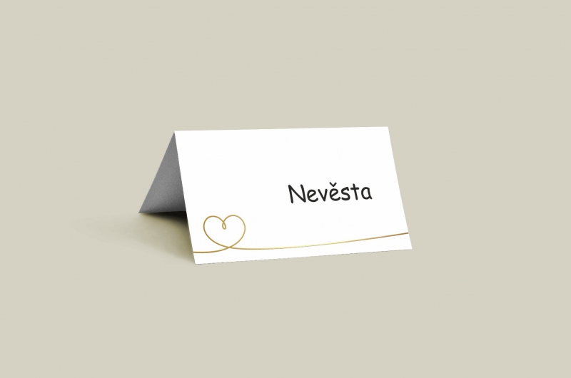 Jmenovka na svatební stůl s moderním designem. Tisk na kvalitním papíru v gramáži 300g/m2 s povrchovou úpravou matného soft touch lamina.