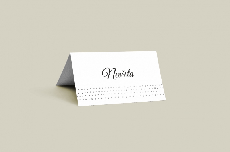 Jmenovka na svatební stůl s moderním designem. Tisk na kvalitním papíru v gramáži 300g/m2 s povrchovou úpravou matného soft touch lamina.