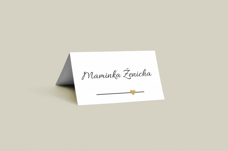 Jmenovka na svatební stůl s moderním designem. Tisk na kvalitním papíru v gramáži 300g/m2 s povrchovou úpravou matného soft touch lamina.