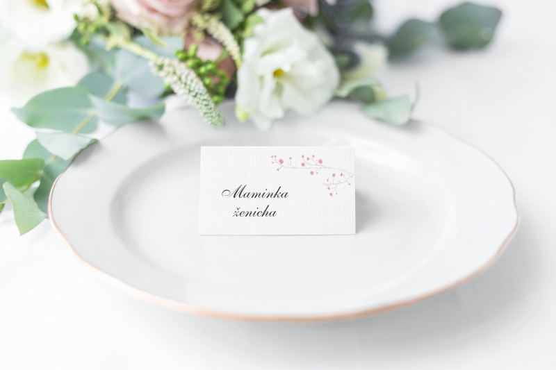 Moderní jmenovka na svatební stůl s elegantním designem, který vynikne na různobarevných grafických papírech. Krásné květinové motivy skvěle doplní Vaši svatební tabuli.