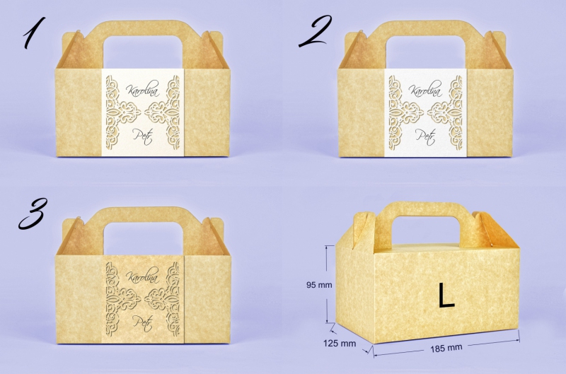 Svatební krabičky vyrábíme ve 2 barvách - bílá a recykl.