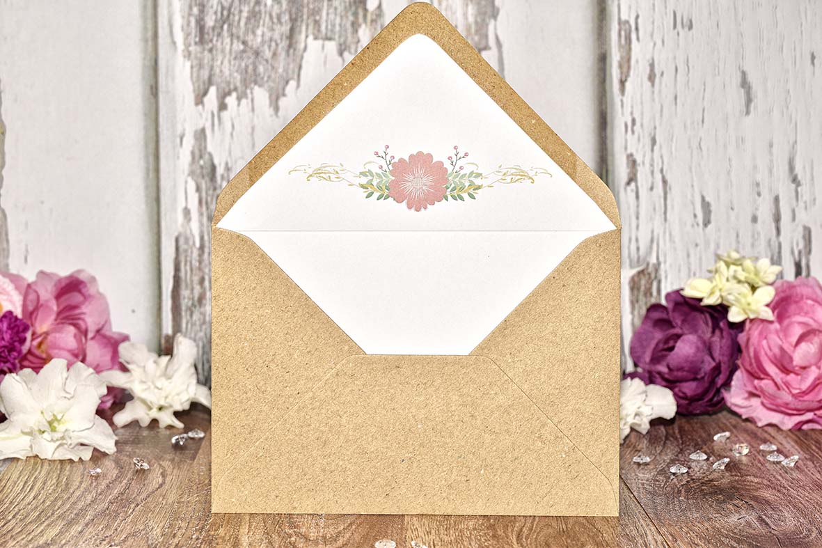 Obálku v jiné barvě, nebo obálku s tištěným motivem si můžete objednat v nabídce svatebních obálek.