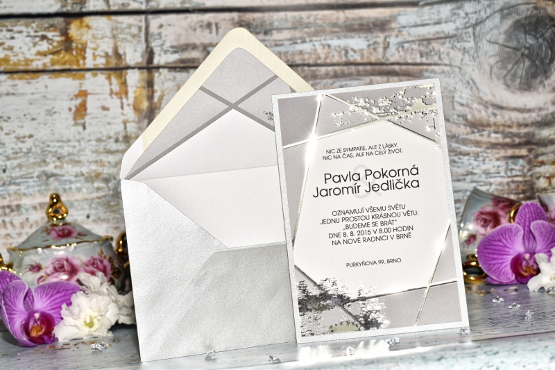 Použitý papír: Bílý matný 250 g/m2 / podklad stříbrný metalický tmavý 250 g/m2