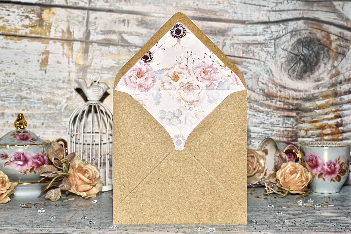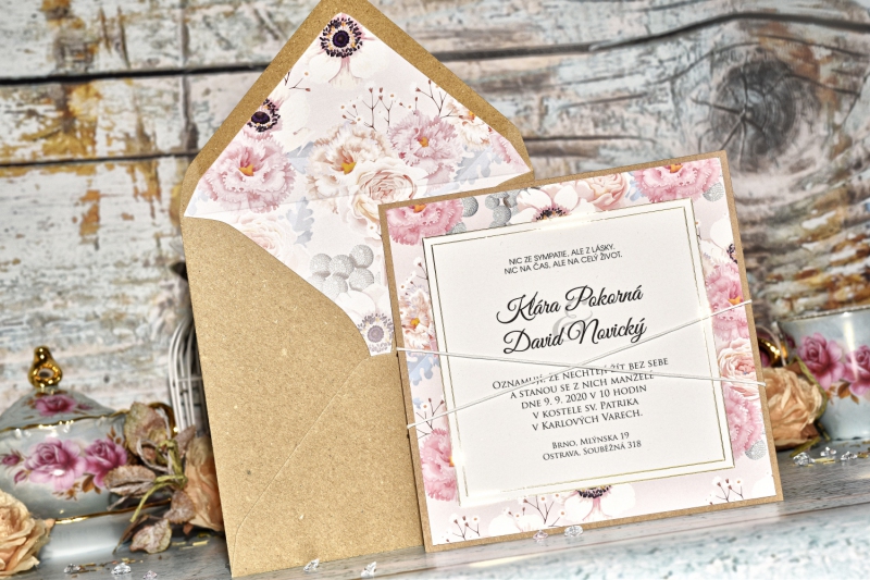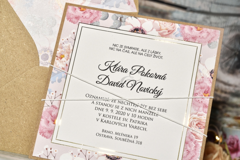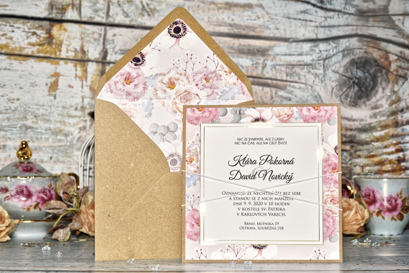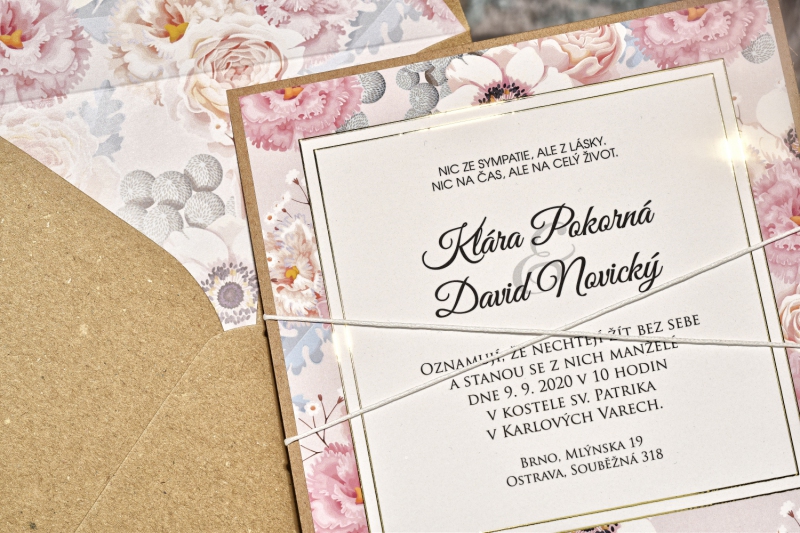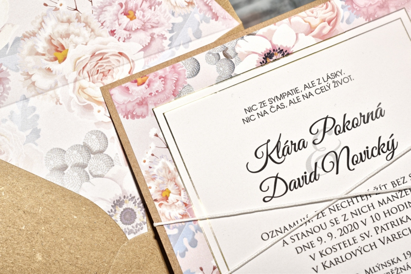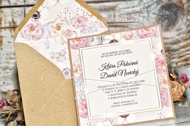Obálku v jiné barvě, nebo obálku s tištěným motivem si můžete objednat v nabídce svatebních obálek.