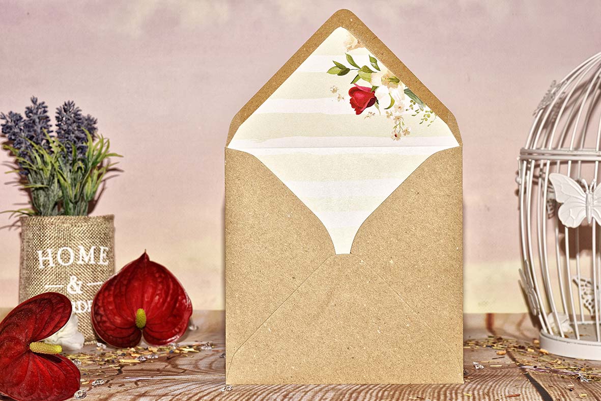 Obálku v jiné barvě, nebo obálku s tištěným motivem si můžete objednat v nabídce svatebních obálek.