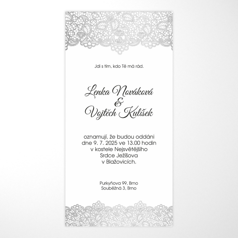 Obálku v jiné barvě, nebo obálku s tištěným motivem si můžete objednat v nabídce svatebních obálek.