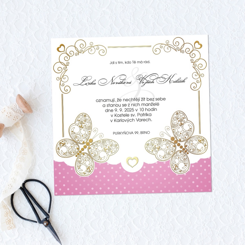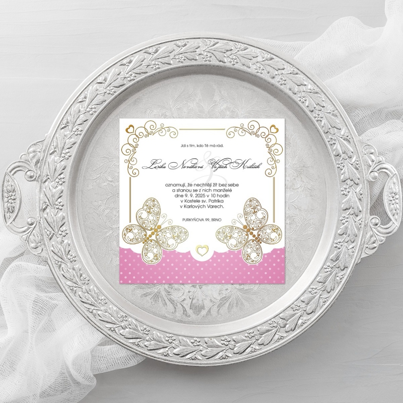 Obálku v jiné barvě, nebo obálku s tištěným motivem si můžete objednat v nabídce svatebních obálek.