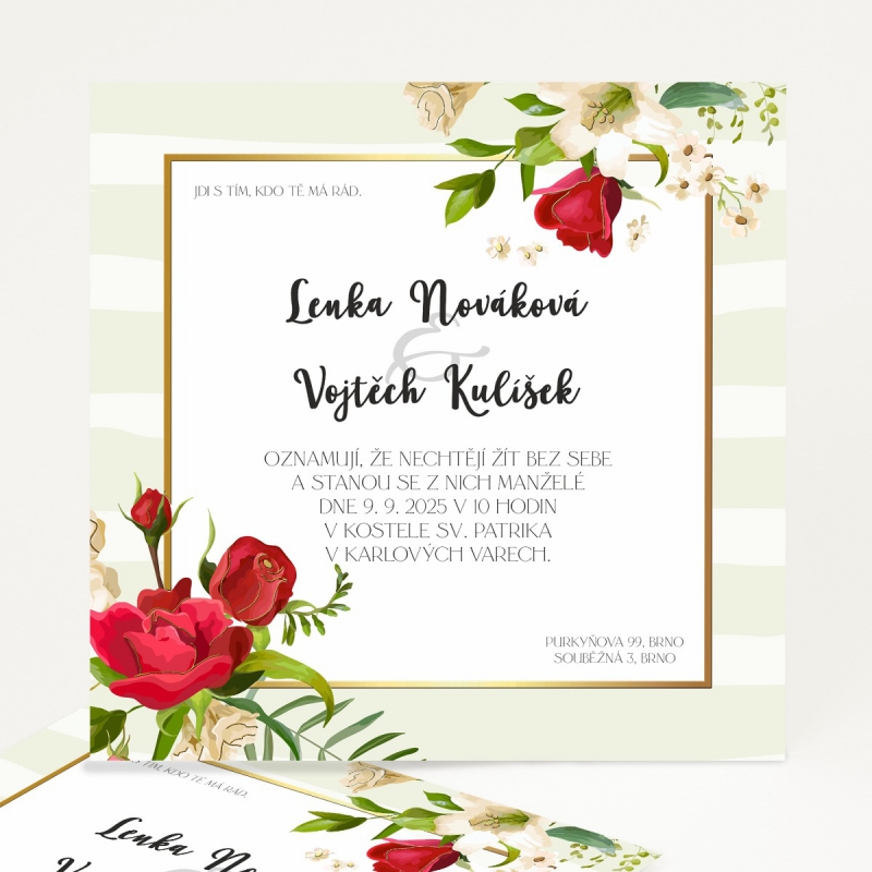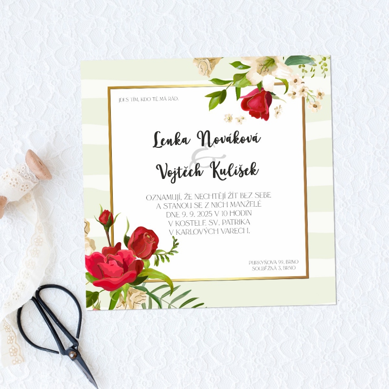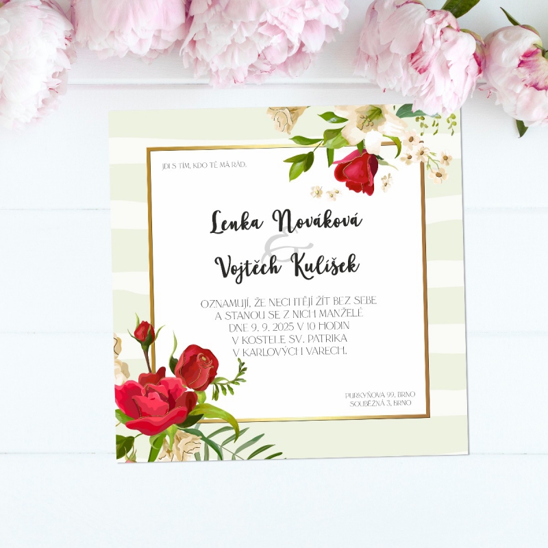 Originální svatební oznámení s moderním designem. Tisk na kvalitním papíru v gramáži 300g/m2 s povrchovou úpravou matného soft touch lamina.