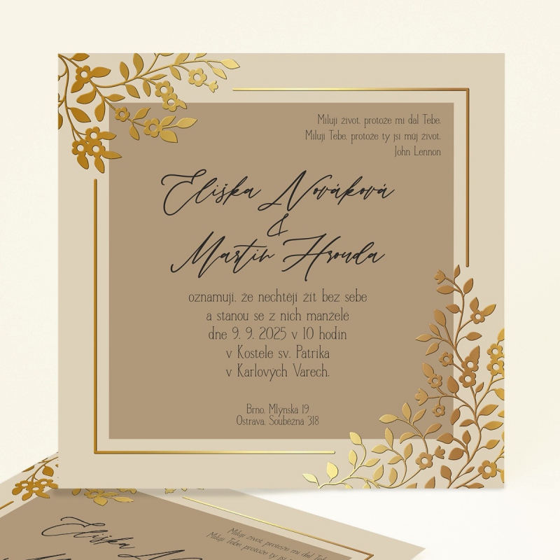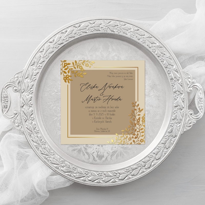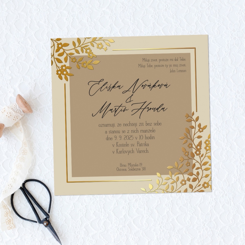 Originální svatební oznámení s moderním designem. Tisk na kvalitním papíru v gramáži 300g/m2 s povrchovou úpravou matného soft touch lamina.
