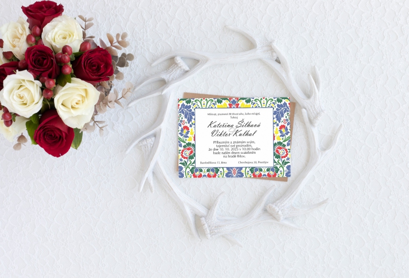 Obálku v jiné barvě, nebo obálku s tištěným motivem si můžete objednat v nabídce svatebních obálek.