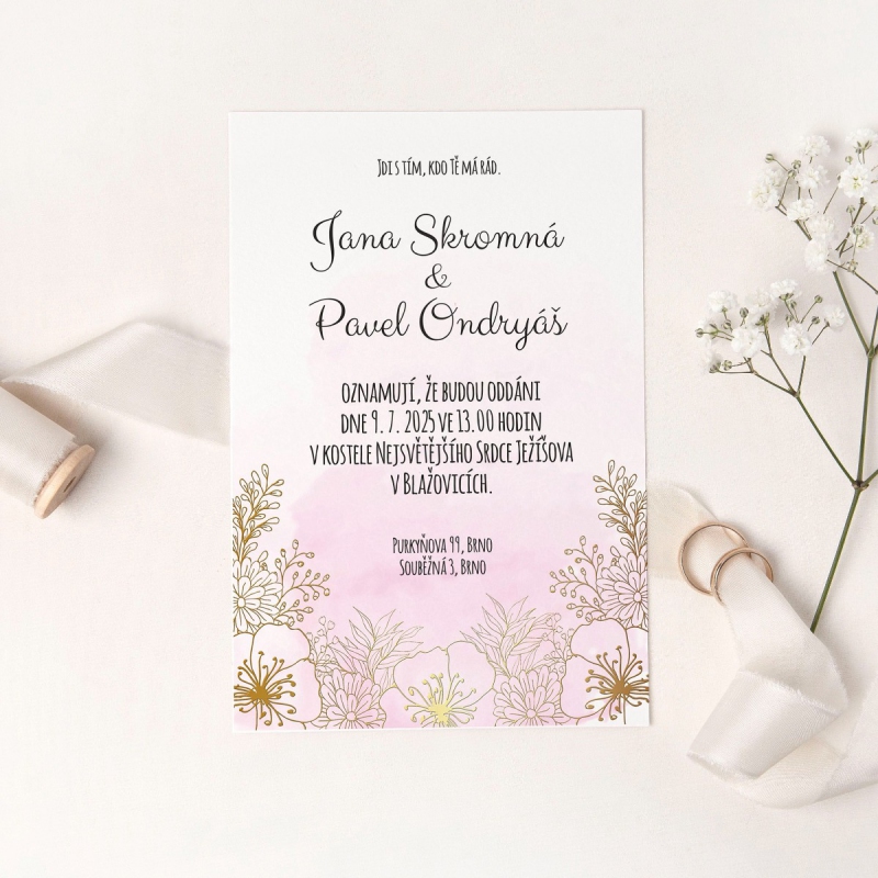 K tomuto produktu si můžete ve stejném designu objednat i další svatební tiskoviny pod položkou 'související produkty' níže na této stránce.