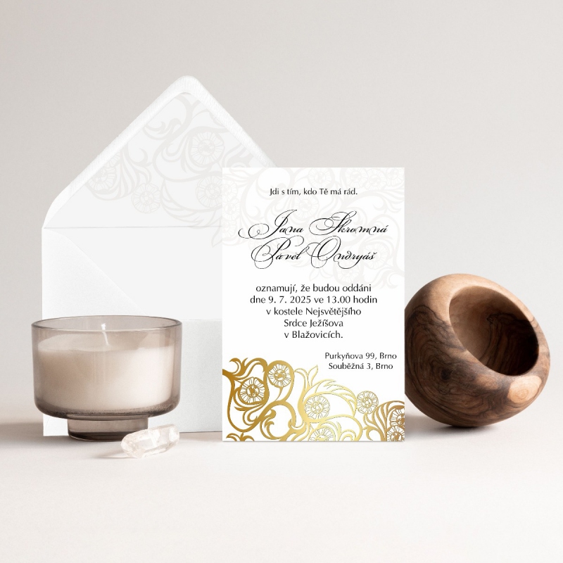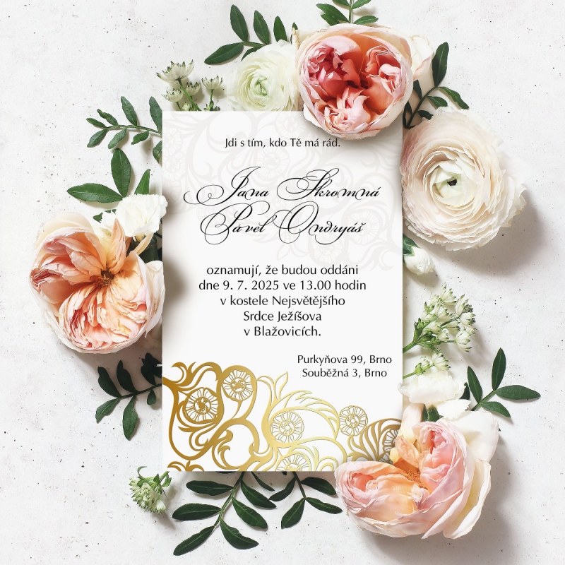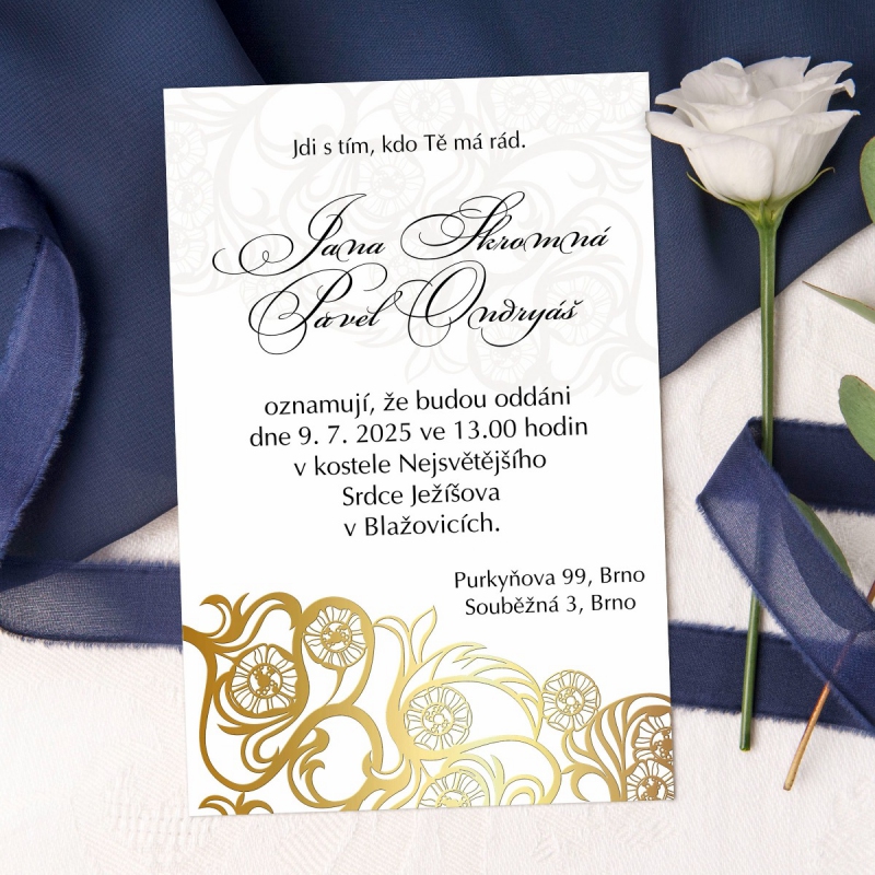 K tomuto produktu si můžete ve stejném designu objednat i další svatební tiskoviny pod položkou 'související produkty' níže na této stránce.