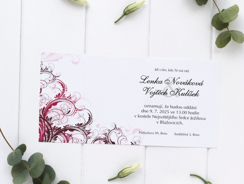 K tomuto produktu si můžete ve stejném designu objednat i další svatební tiskoviny pod položkou 'související produkty' níže na této stránce.