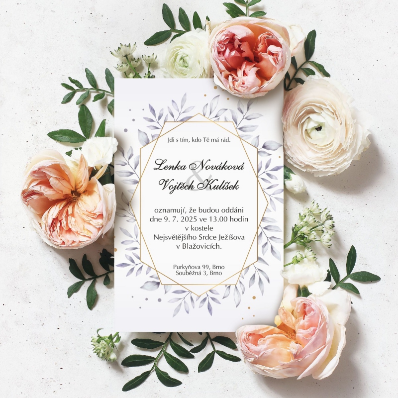 K tomuto produktu si můžete ve stejném designu objednat i další svatební tiskoviny pod položkou 'související produkty' níže na této stránce.